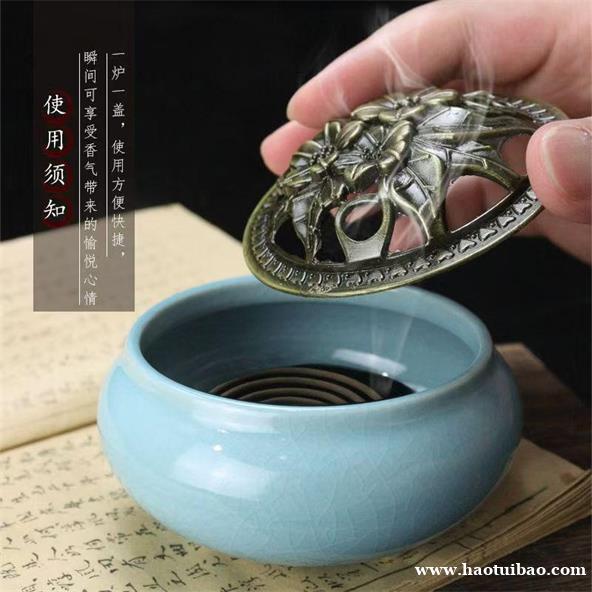 民艾天下家用香炉陶瓷空气净化炉盘香式香炉除臭房间香薰