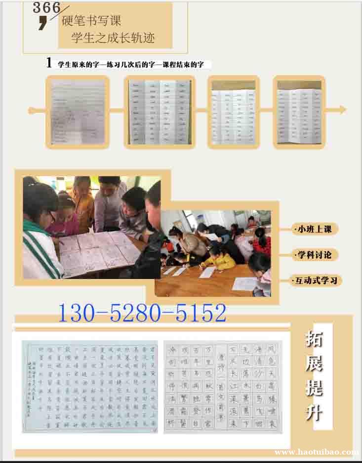 书法:让学生掌握书写要求和技巧,在训练过程中,展现各类书法字体的风格,并让学生初步掌握书写基础,同时培养学生的定力和耐力。硬笔教学方法:实用硬笔书法,针对学生握笔、坐姿错误、书写潦草、书写速度慢等问题,并与课本生词同步,时间短,提升快 。